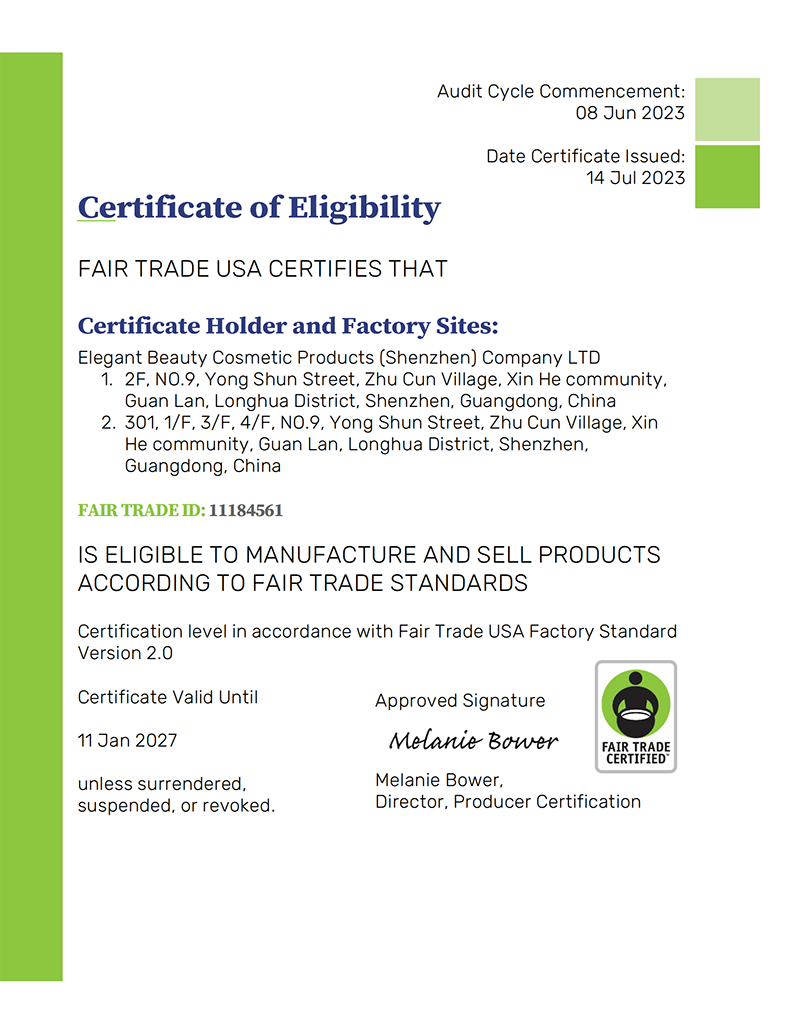 91免费网址大全化妝用品(深圳)有限公司 喜獲美國公平貿易認證!!!